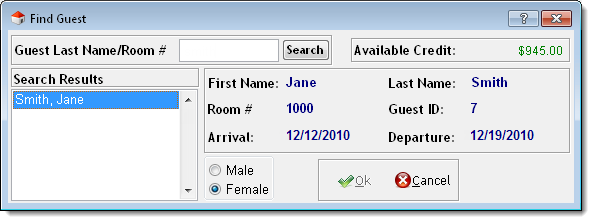 Type the guest's last name or room number in the Guest Last Name/Room # field and press Enter.