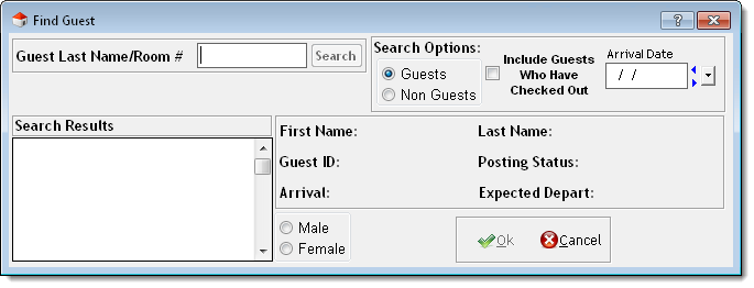 Type the guest's last name or room number in the Guest Last Name/Room # field and press Enter.