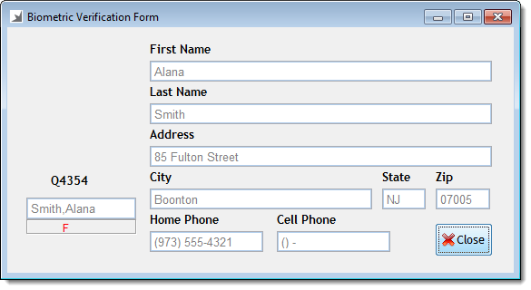 The Biometric Verification Form window displays.