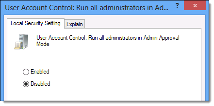 Deselect Use User Account Control (UAC) to help protect your computer.