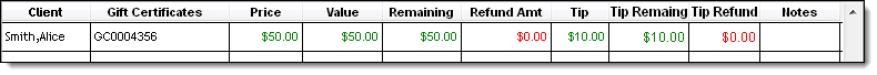 Tip: If the client has multiple gift certificates, select the gift certificate to refund in the Gift Certificate Selection field and click + .