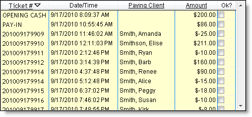 If a list of clients displays, review the clients in the list and check out/ring up the clients that showed up for their appointment. Once you have checked out all of the clients that showed up, you are ready to process tips and enter the closing totals.