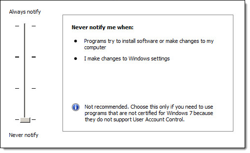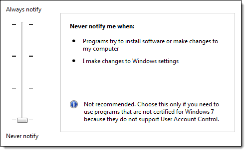 The User Account Control Settings window displays.
