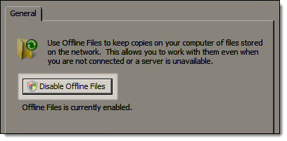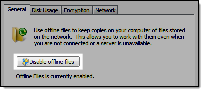 Click Disable offline files.