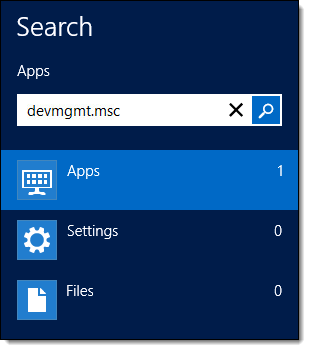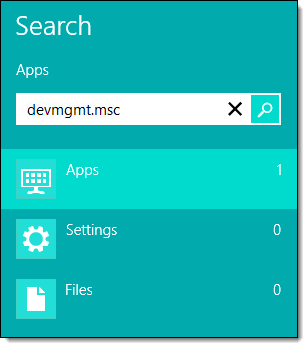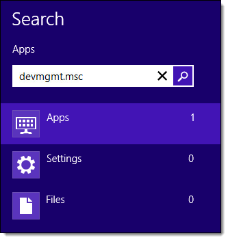 On the Start screen, type "devmgmt.msc" and press Enter.