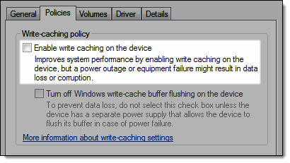 Deselect Enable write caching on the device.