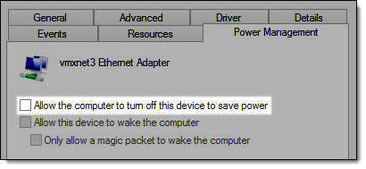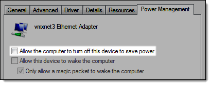 Deselect Allow the computer to turn off this device to save power.