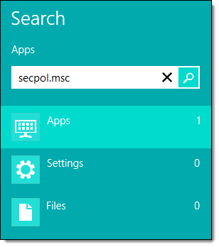 On the Start screen, type "secpol.msc" and press Enter.