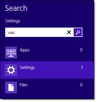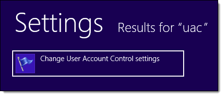 On the Start screen, type "uac" and click Settings.