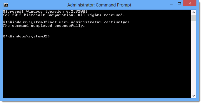 Type "net user administrator / active:yes" and press Enter.