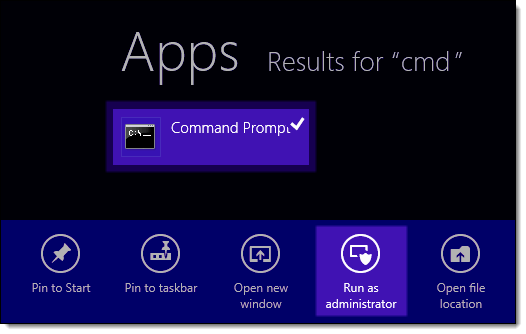 Right-click on the Command Prompt app and select Run as administrator.