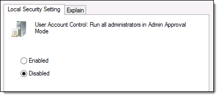 User Account Control (UAC) on or off.