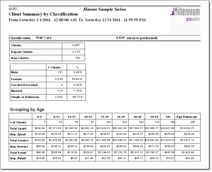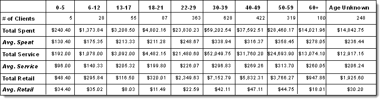 Tip: Run this report at the end of every quarter to analyze the changes in client demographics due to marketing efforts.