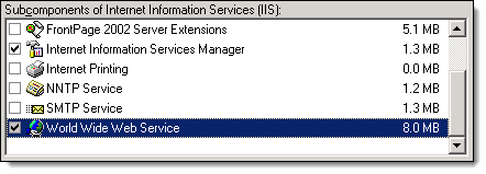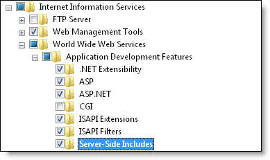 Double-click Web Management Tools, double-click World Wide Web Services, double-click Application Development Features, and select the following: