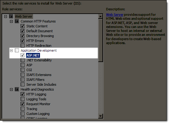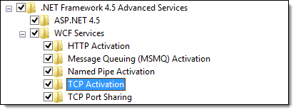 Double-click .NET Framework 4.5 Advanced Services and select the following: