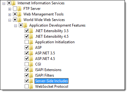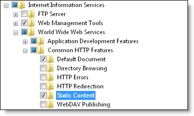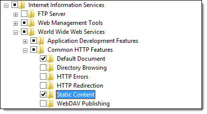 Double-click Application Development Features, double-click Common HTTP Features, and select the following: