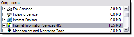 Note: If you already have the IIS component installed, do not skip this step as you must configure the IIS component to work with the SpaBoom interface.
